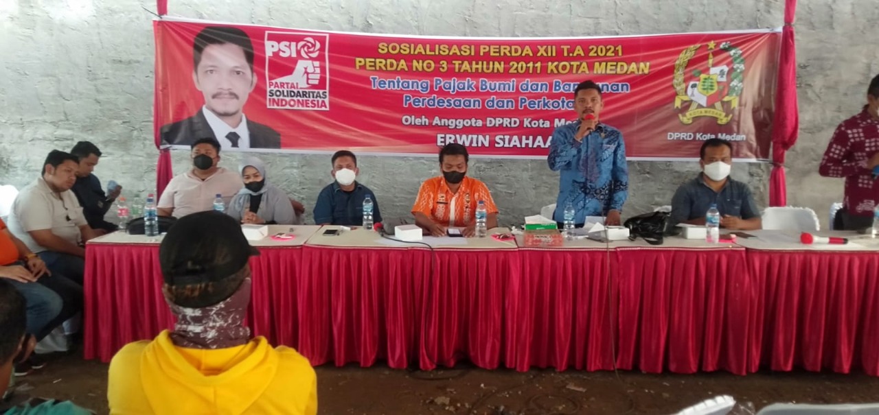 “Lagipula ada ungkapan yang mengatakan ‘orang bijak taat pajak.’ Harusnya sebagai warga yang bijak, membayar PBB menjadi kesadaran warga,” ujar Anggota DPRD Medan Erwin Siahaan kepada warga saat menggelar Sosialisasi Perda No.3 Tahun 2011 Kota Medan tentang PBB Perdesaan dan Perkotaan yang digelarnya Sabtu (4/12/2021) di Lingkungan VI Kelurahan Simalingkar B Kecamatan Medan Tuntungan yang berlangsung 2 sesi.
